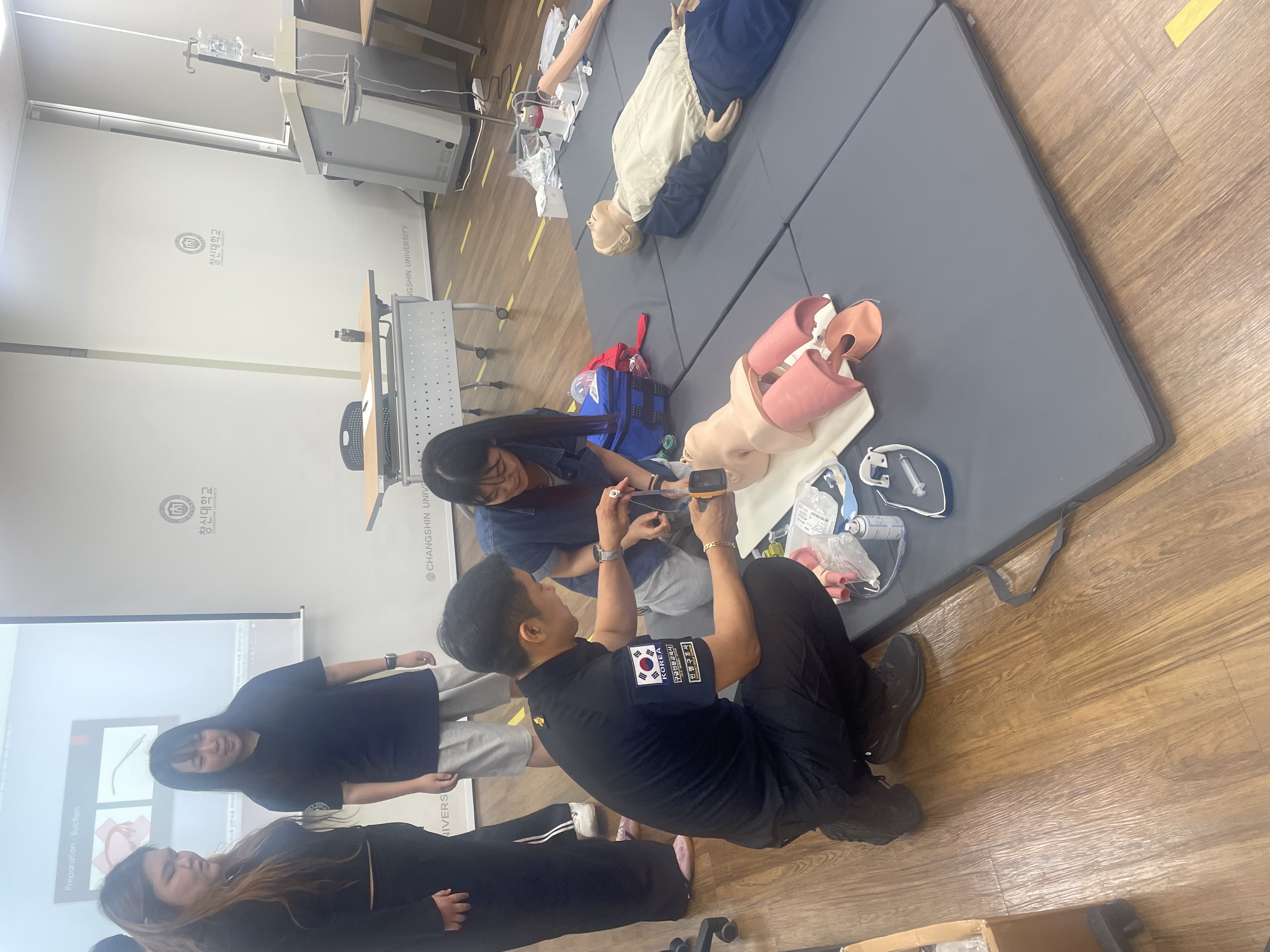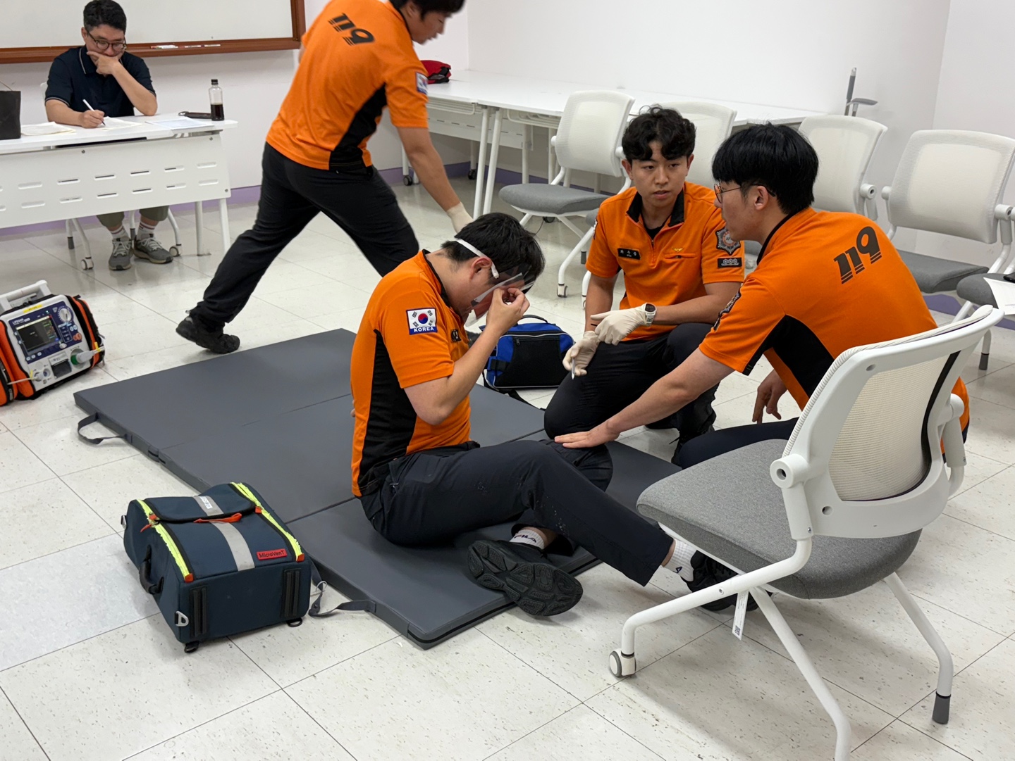 응급의학과 소속 교수님들과 현장경험이 풍부하신 구급전문교육사 강사님들, 교육생분들께서 현장감이 느껴지도록 교육에 임하시는 모습에 재학생들도 진지하게 참관하며 배울 수 있었습니다