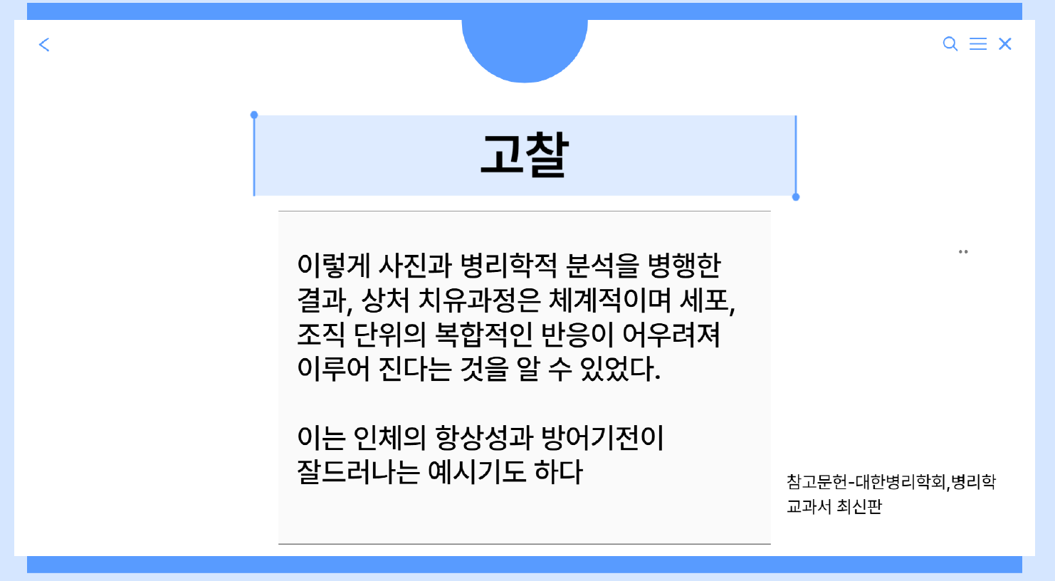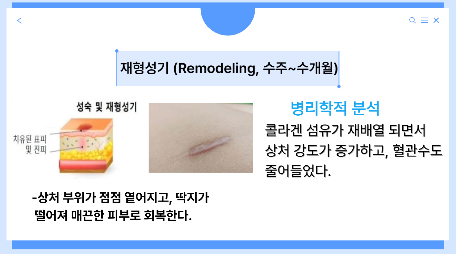 피부상처가 아물어가는 과정을 사진으로 기록하고, 병리학적 관점에서 분석